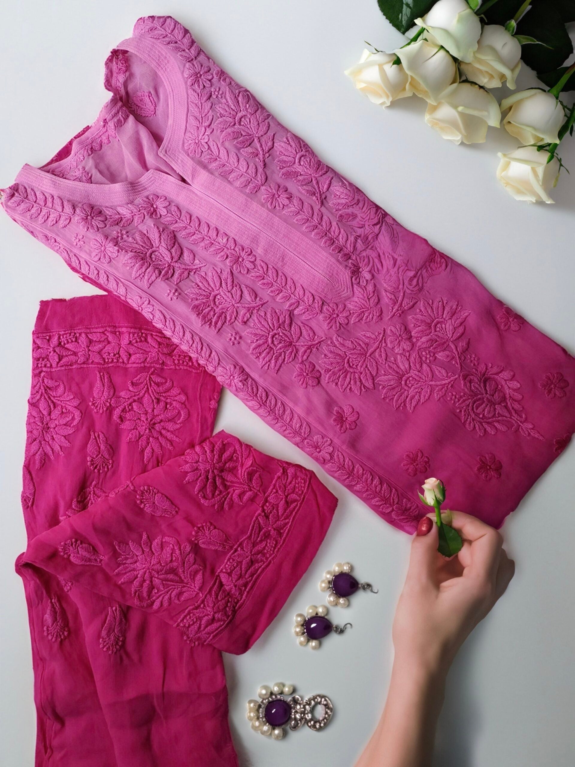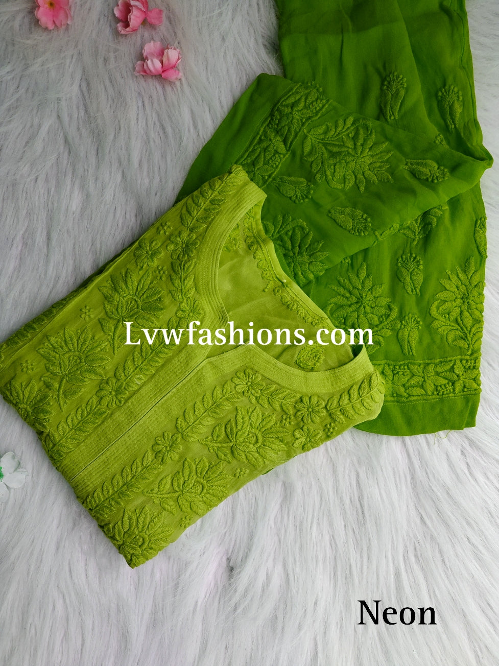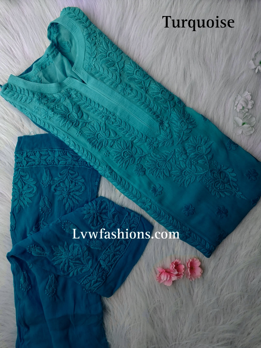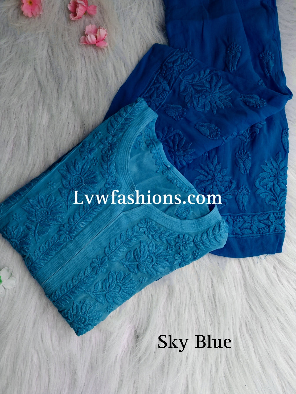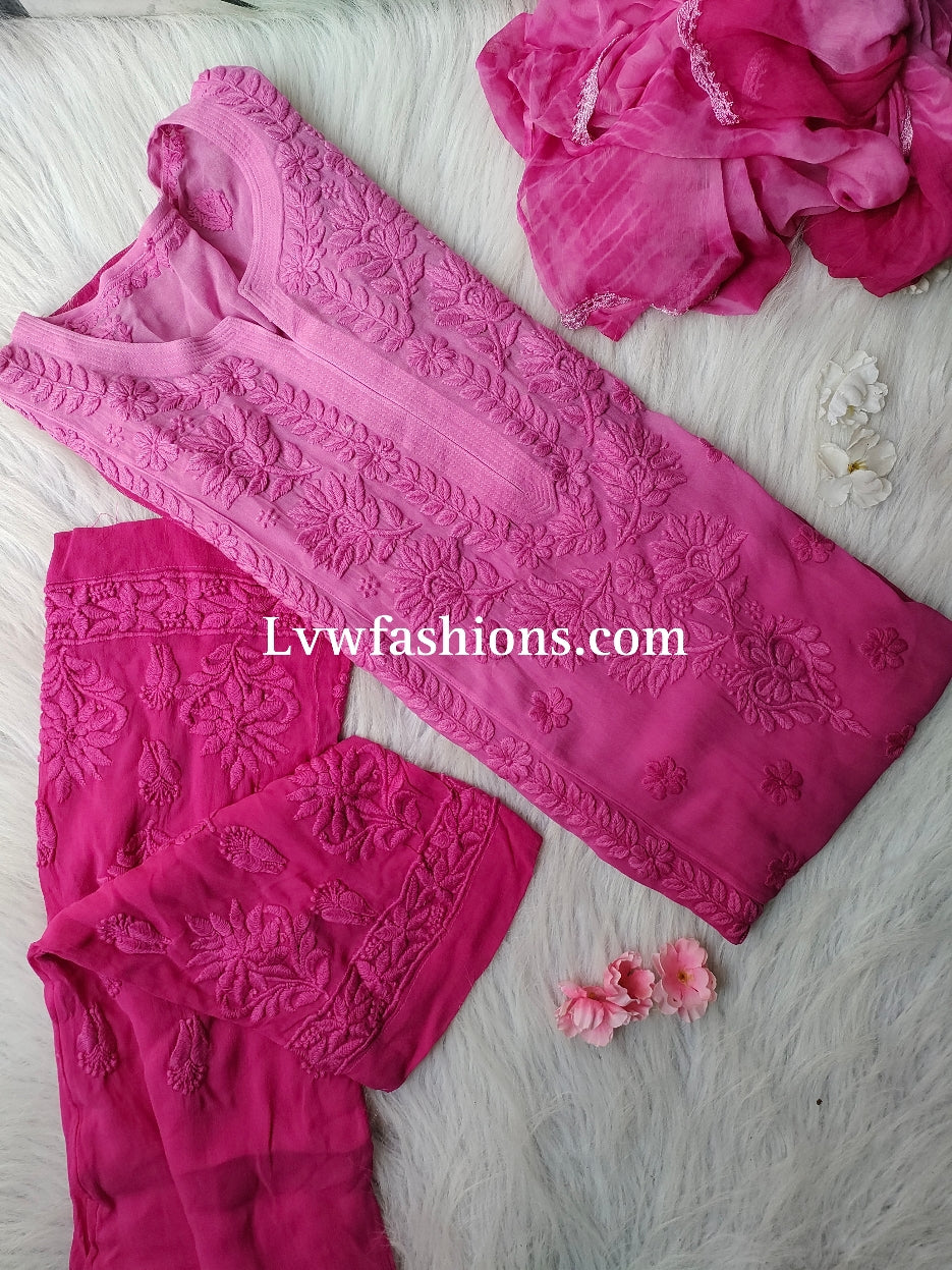 UMBER Premium Georgette Set Daman Special Chikankari Embroidery With Lahriya Dye Duptaa