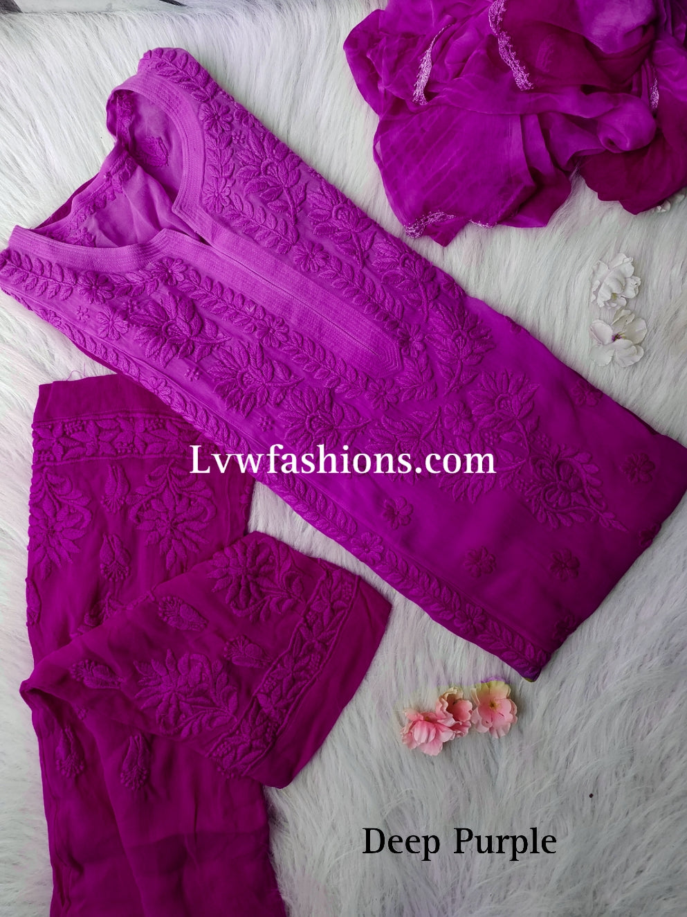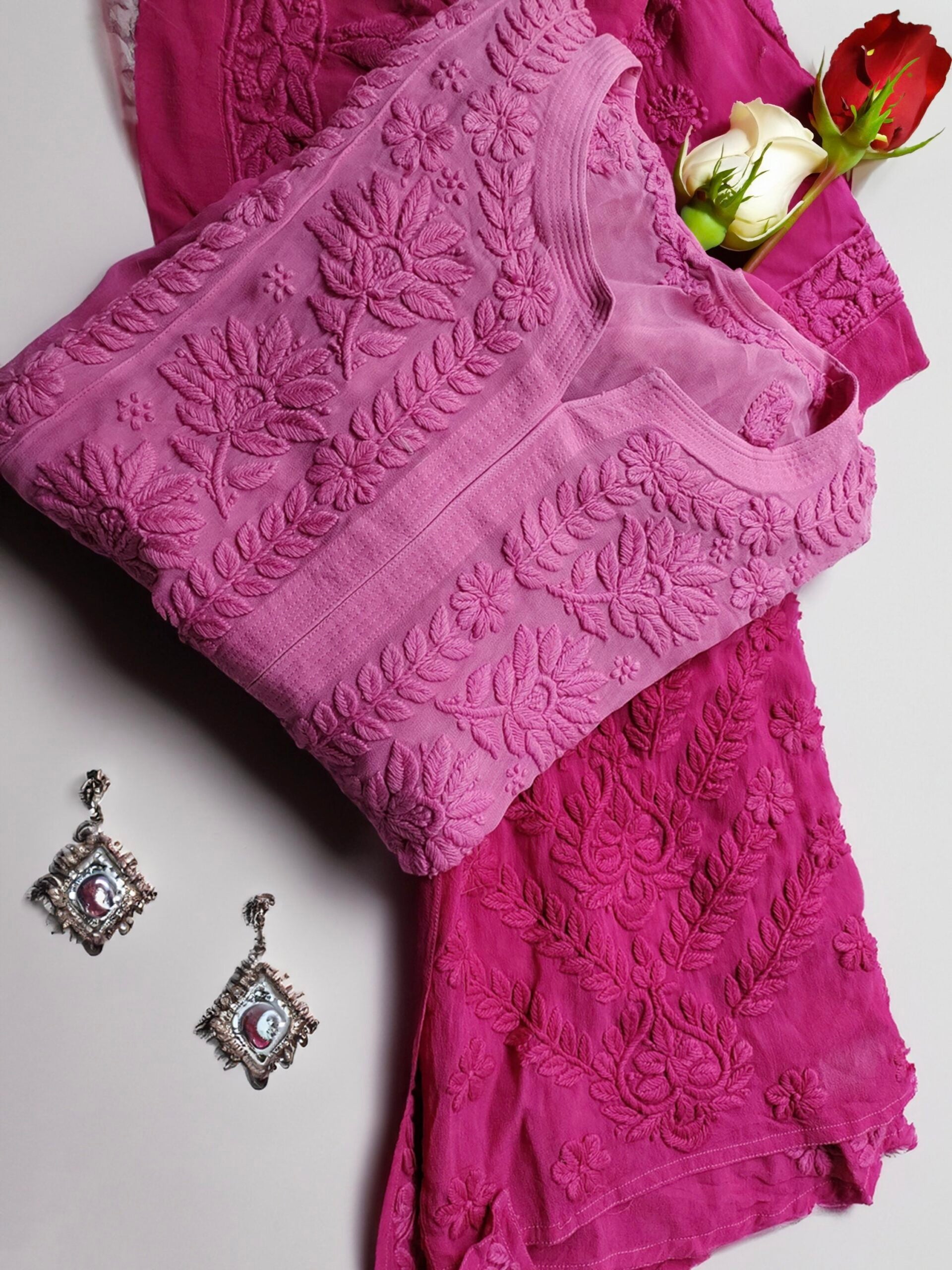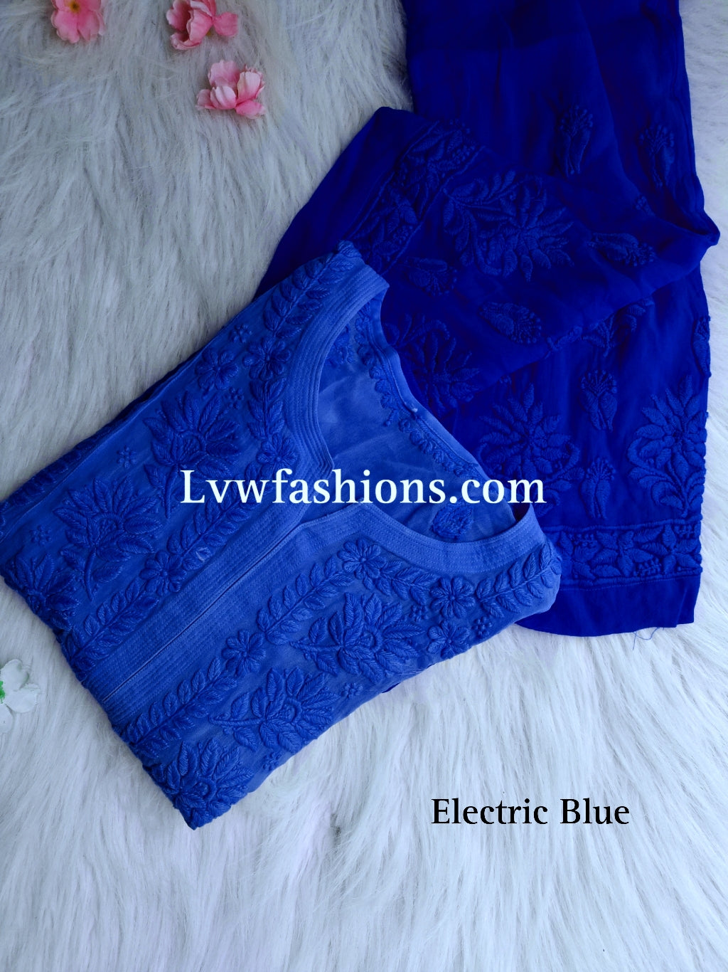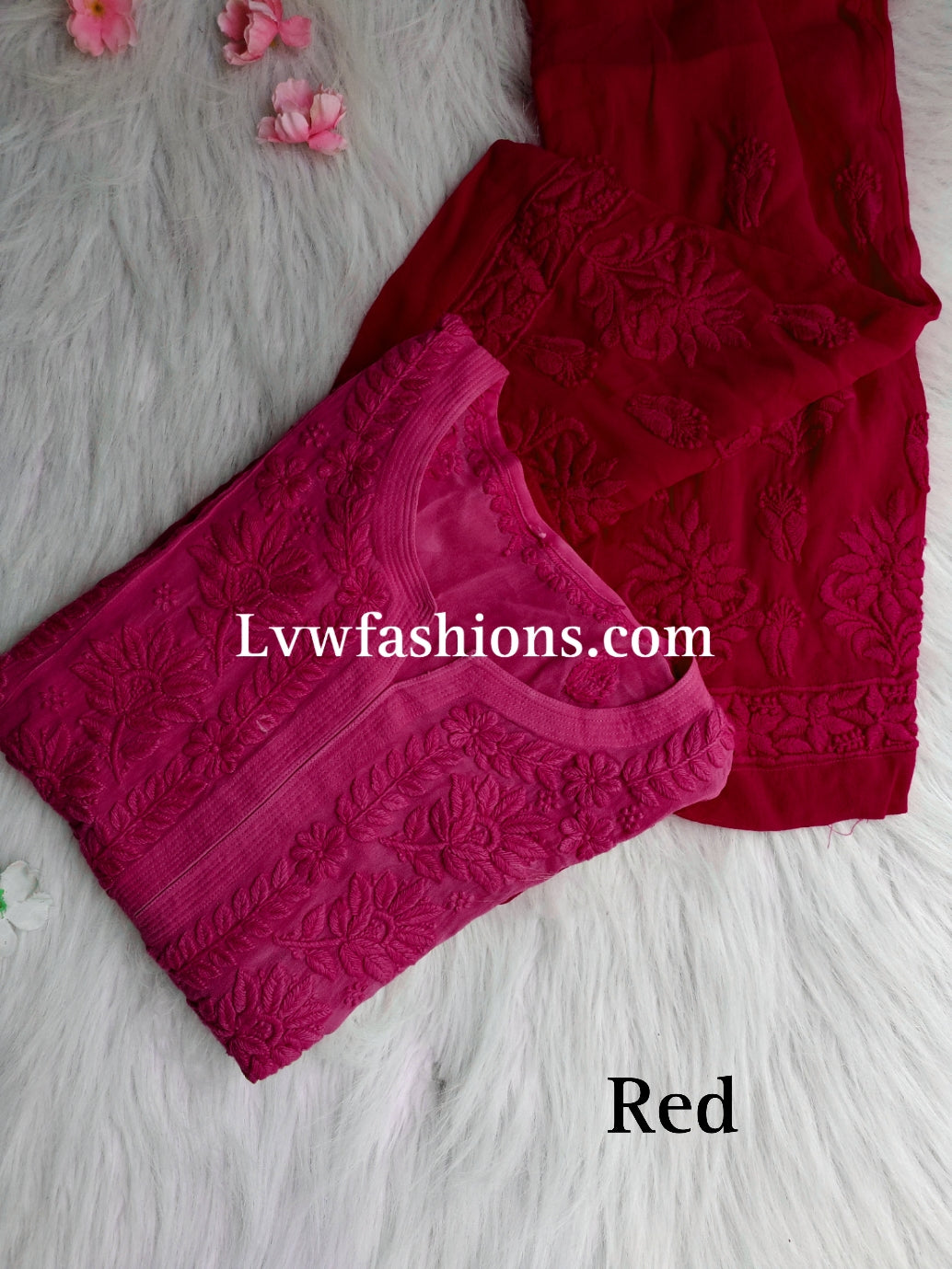 UMBER Premium Georgette Set Daman Special Chikankari Embroidery With Lahriya Dye Duptaa