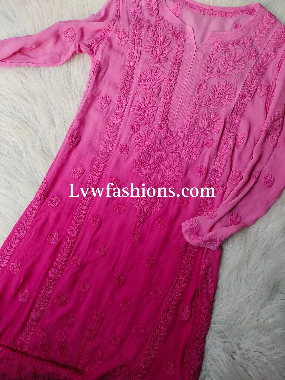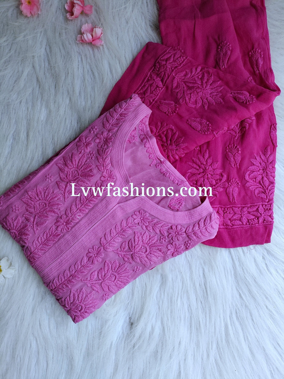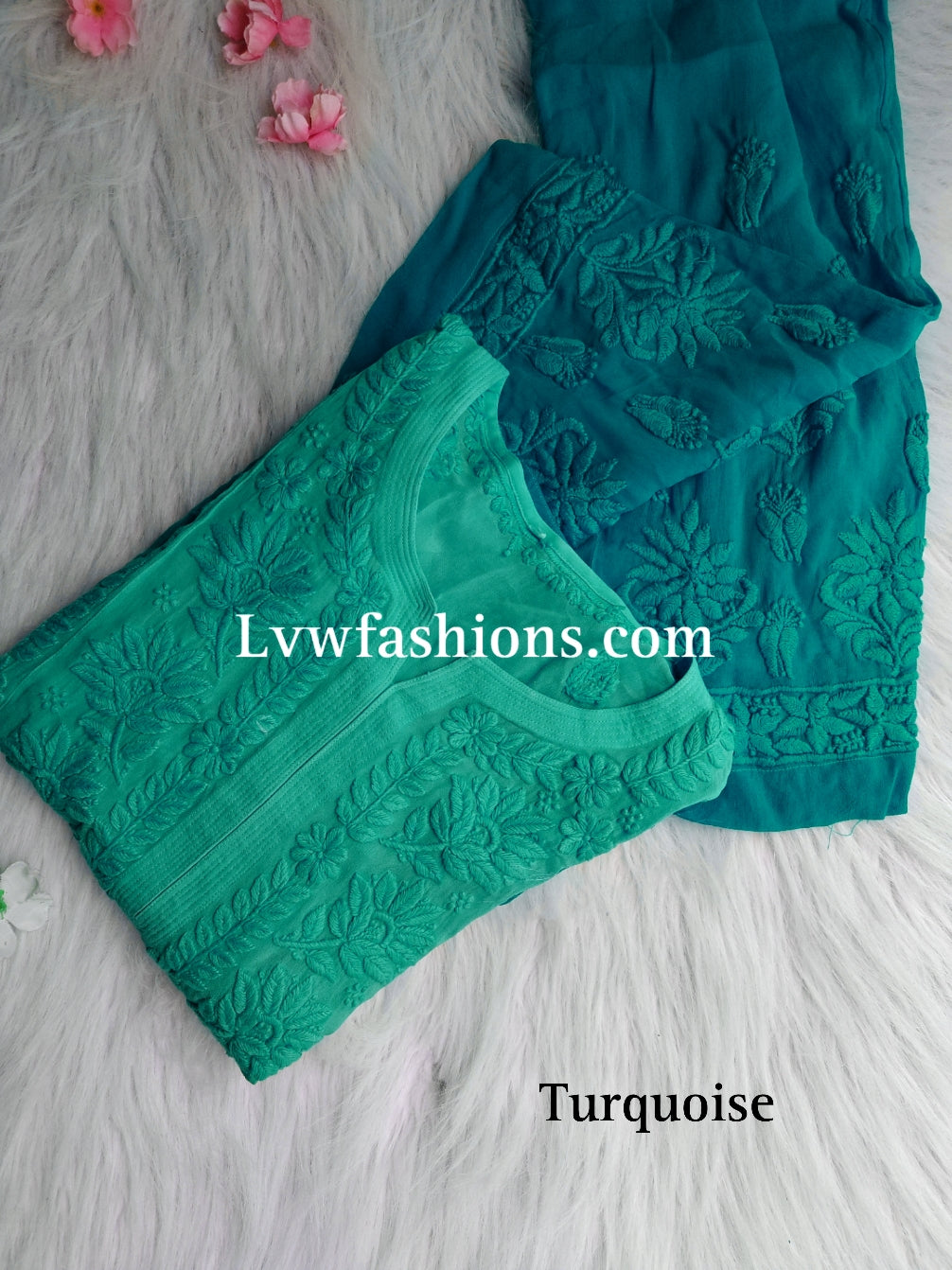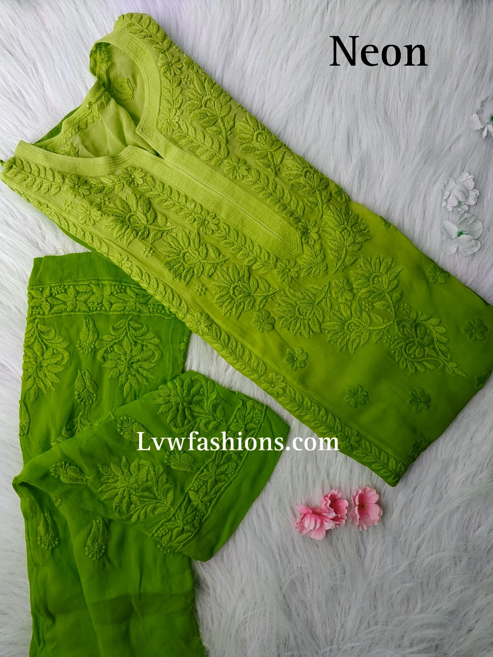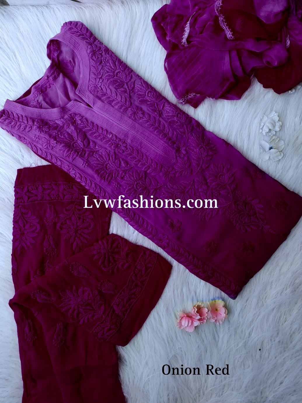 UMBER Premium Georgette Set Daman Special Chikankari Embroidery With Lahriya Dye Duptaa