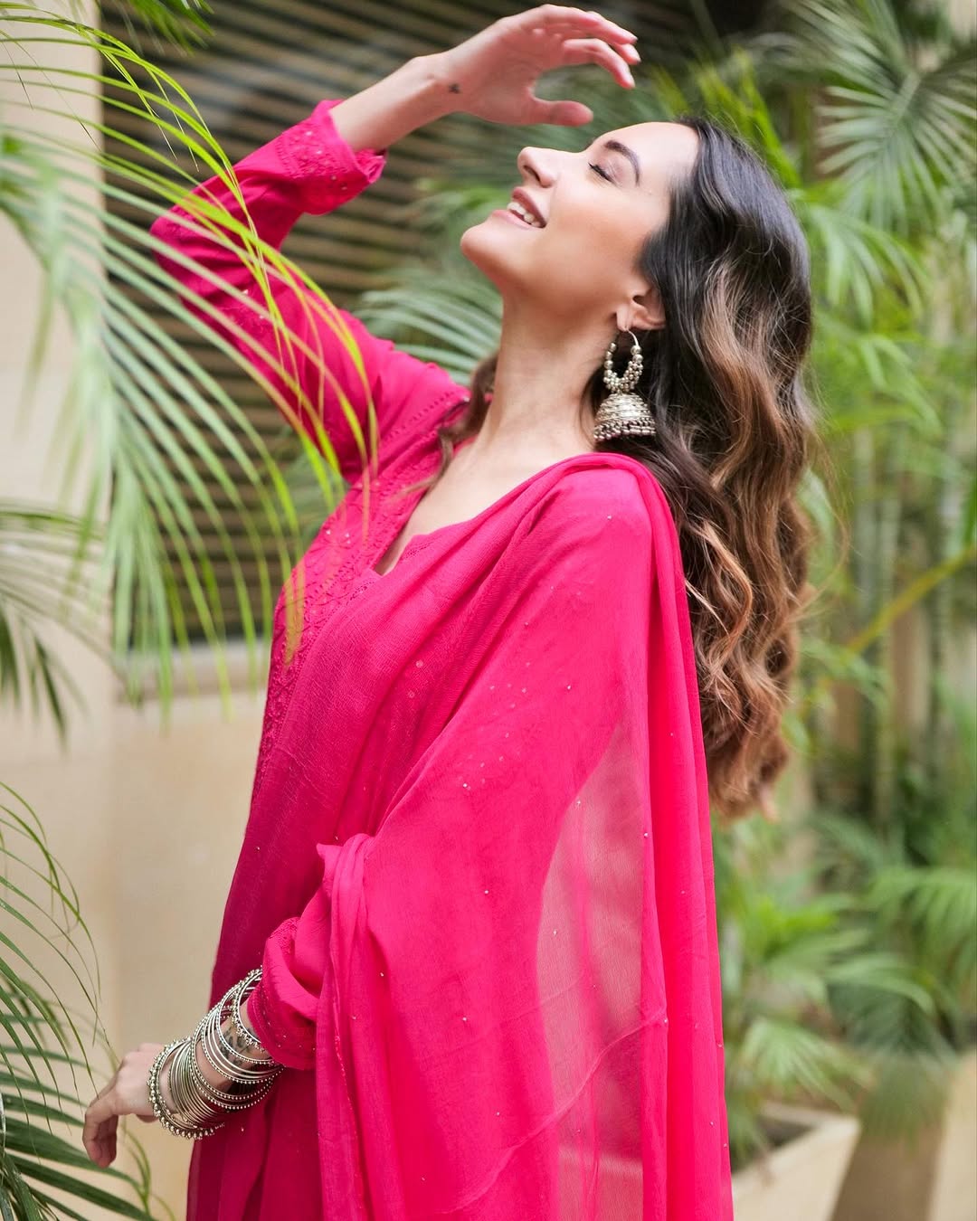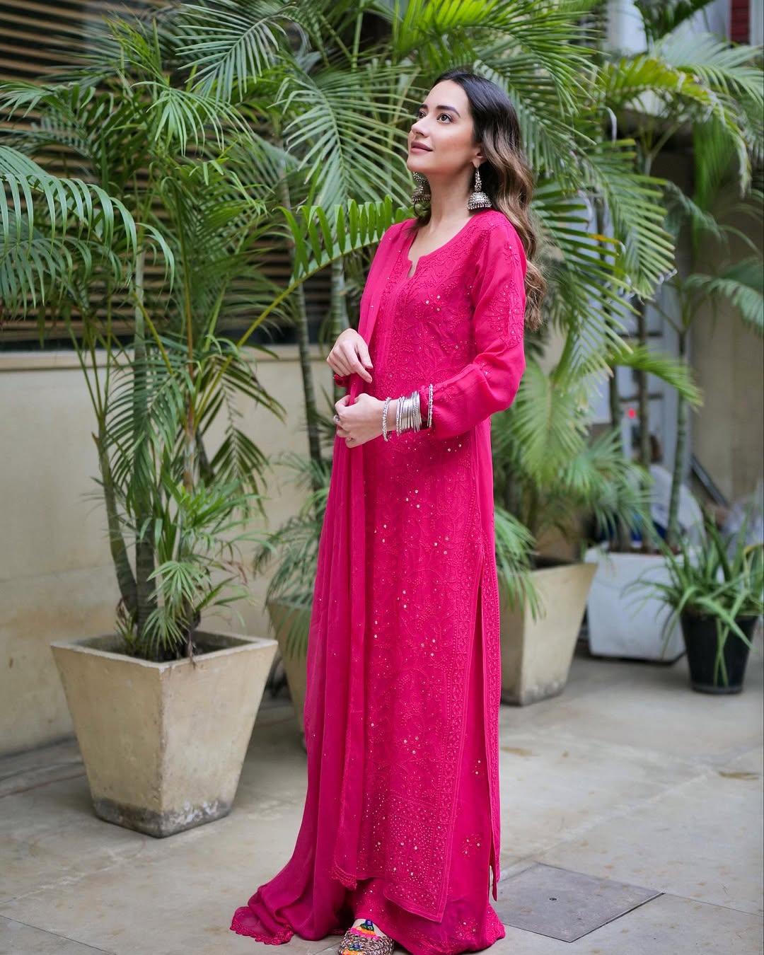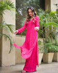 Farah Pinkish Premium Georgette Chikankari Luxurious Kurta Mukaish Add On