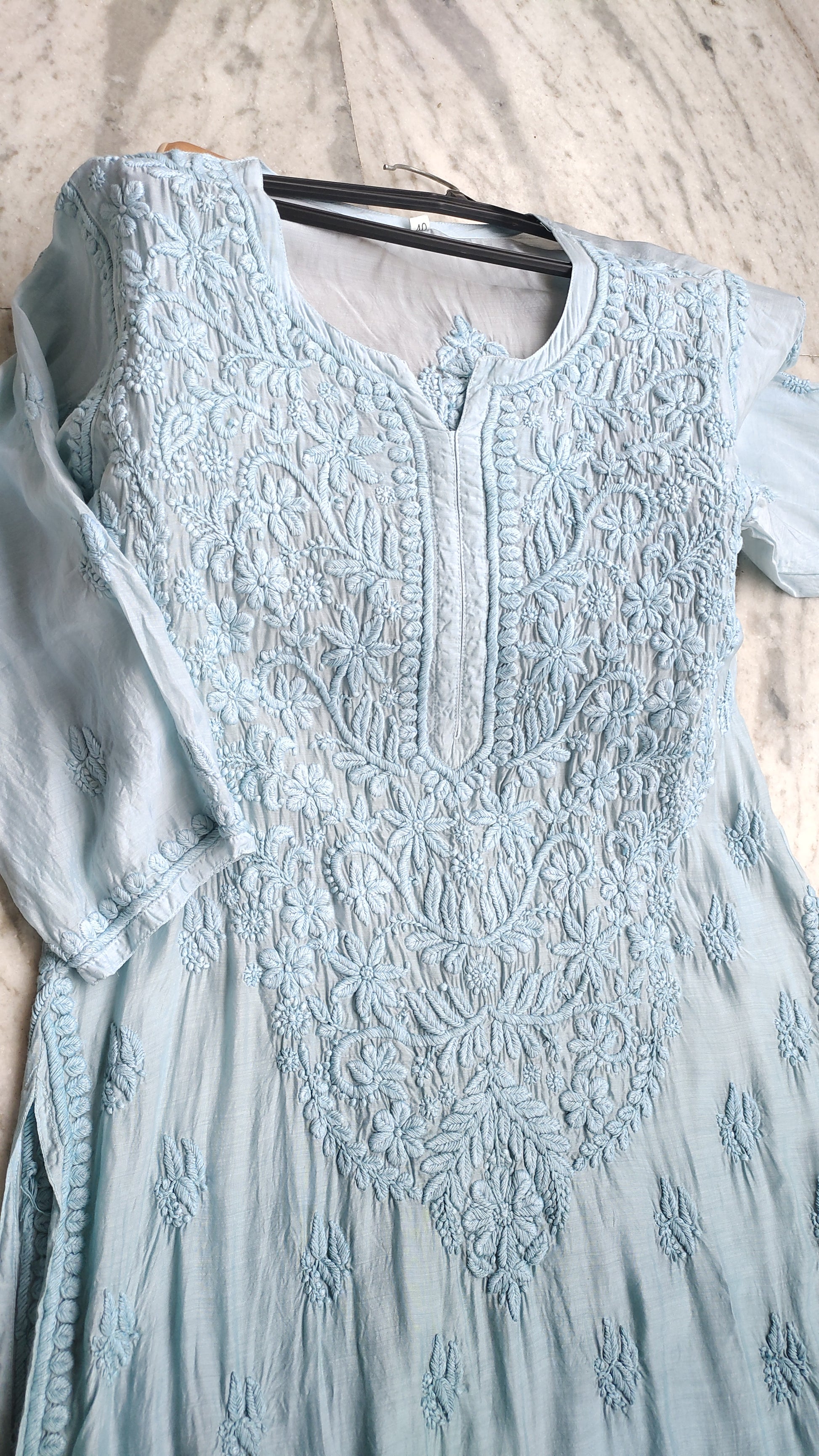 Faraha Heavy Neck Silk Fabric Chikankari Long Kurta Ombre Shade