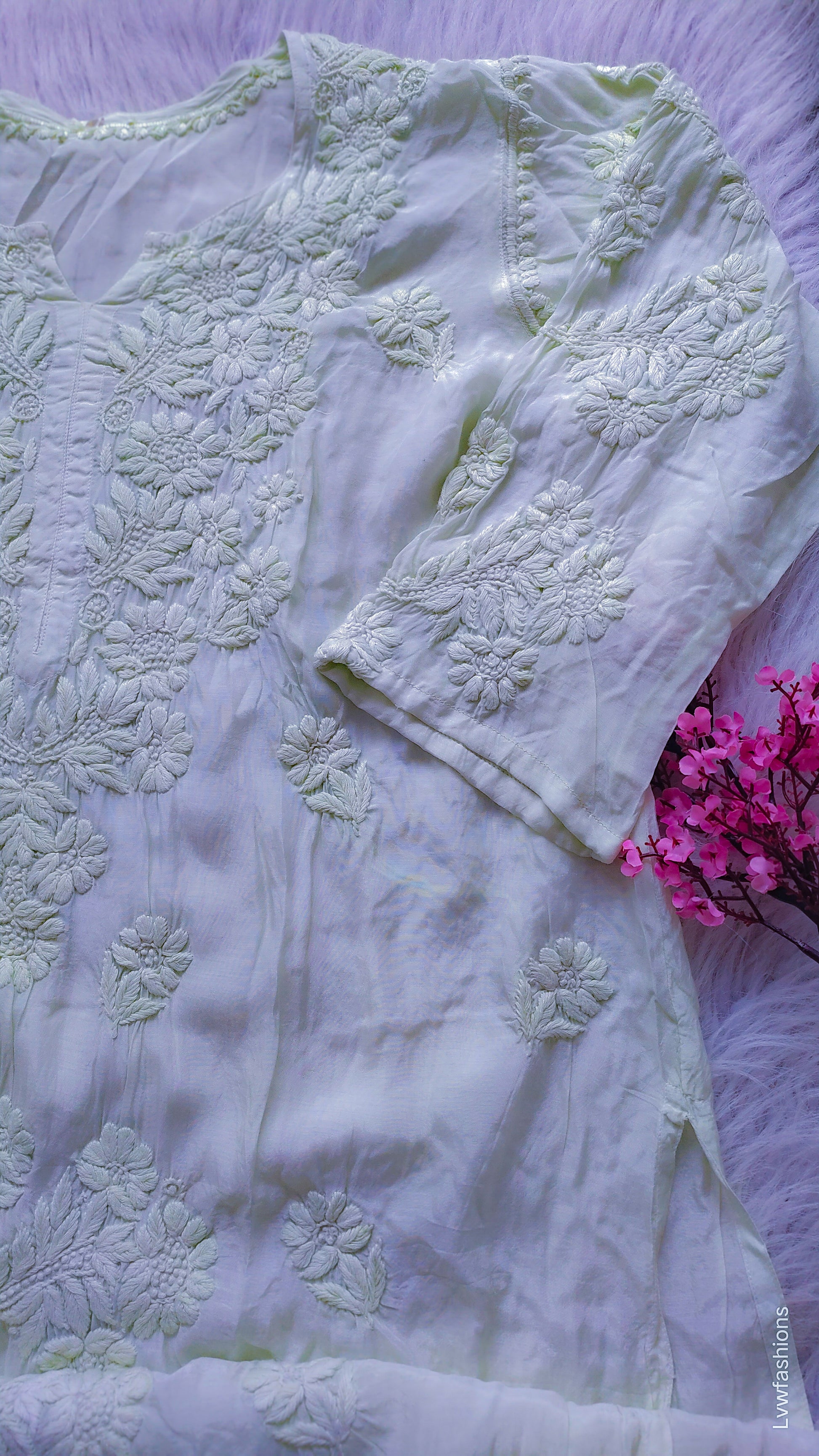 Ceil Premium Silk Chikankari Luxurious Look Long Kurta