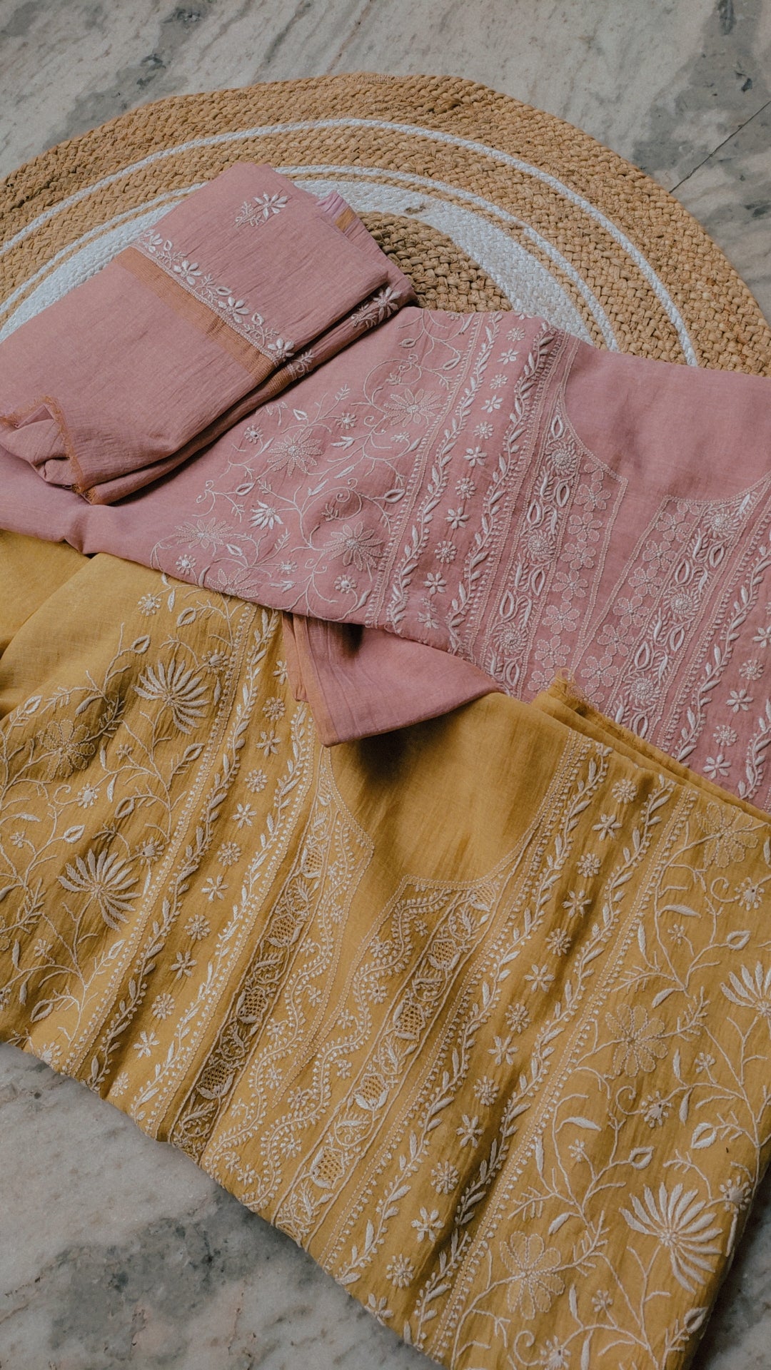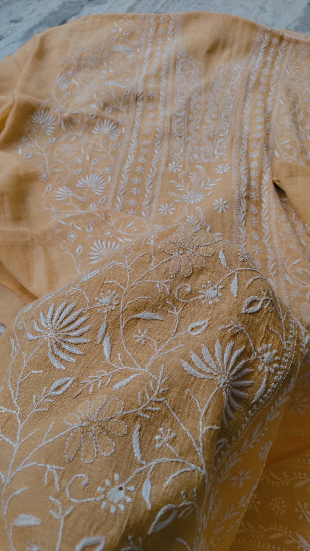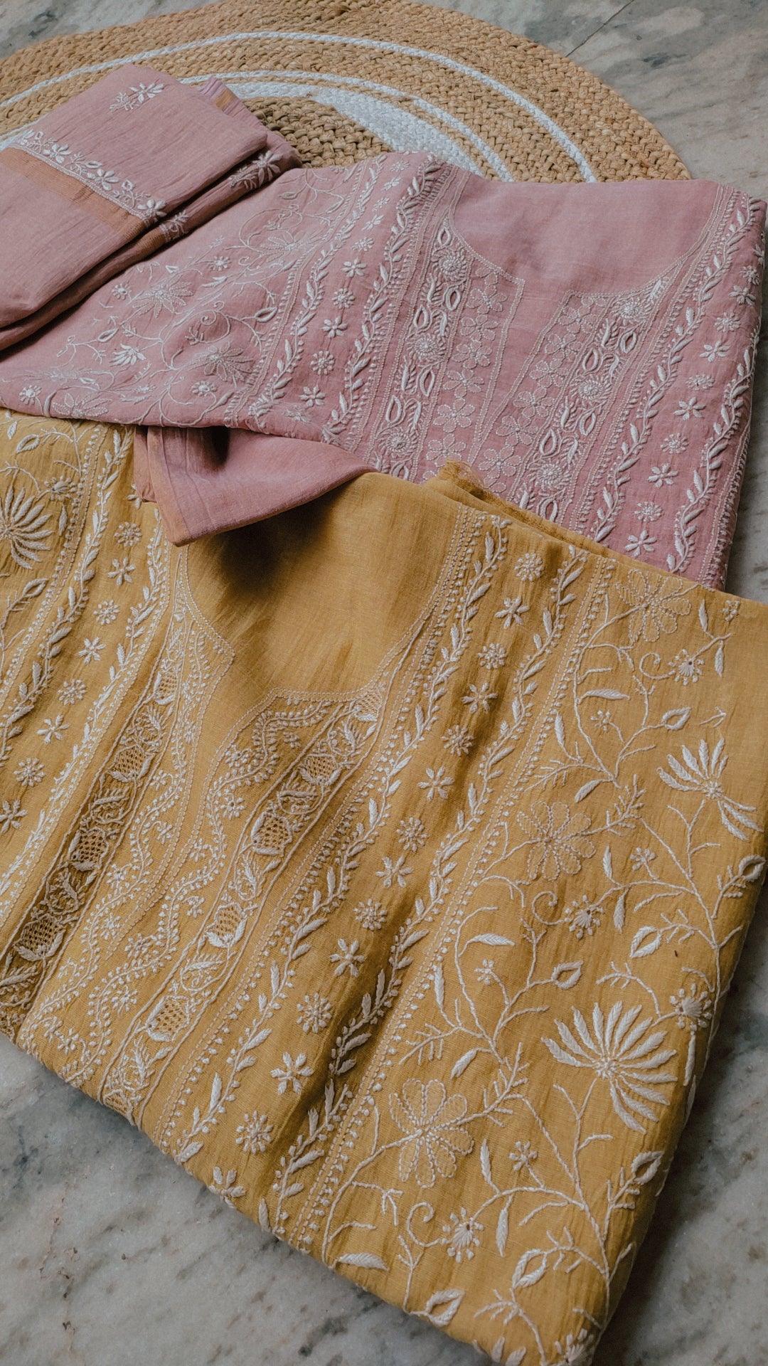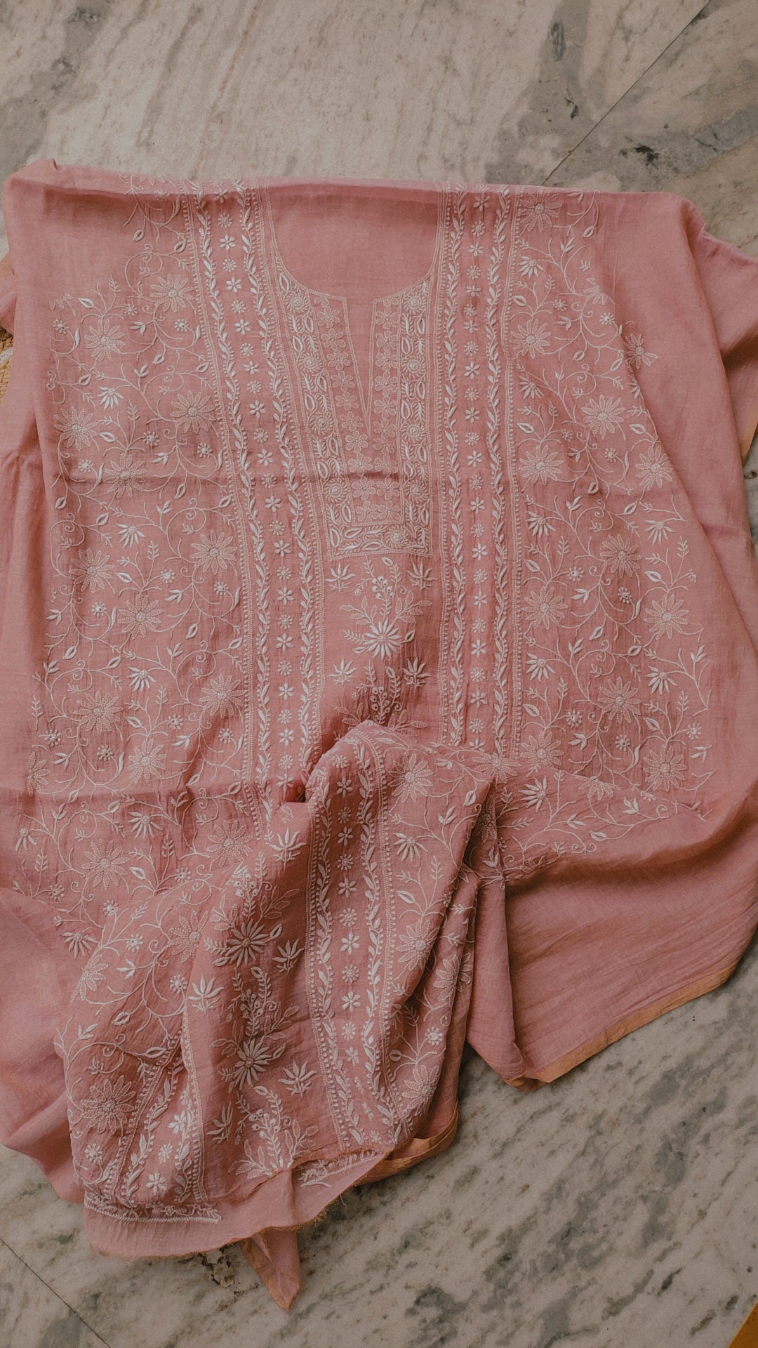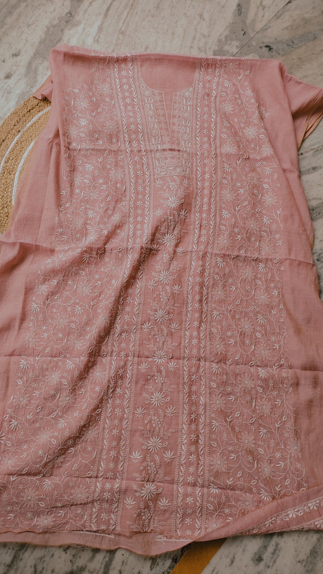 Zainab Premium Mul Chanderi Luxurious Chikankari Kurta Dupatta Unstitched Set