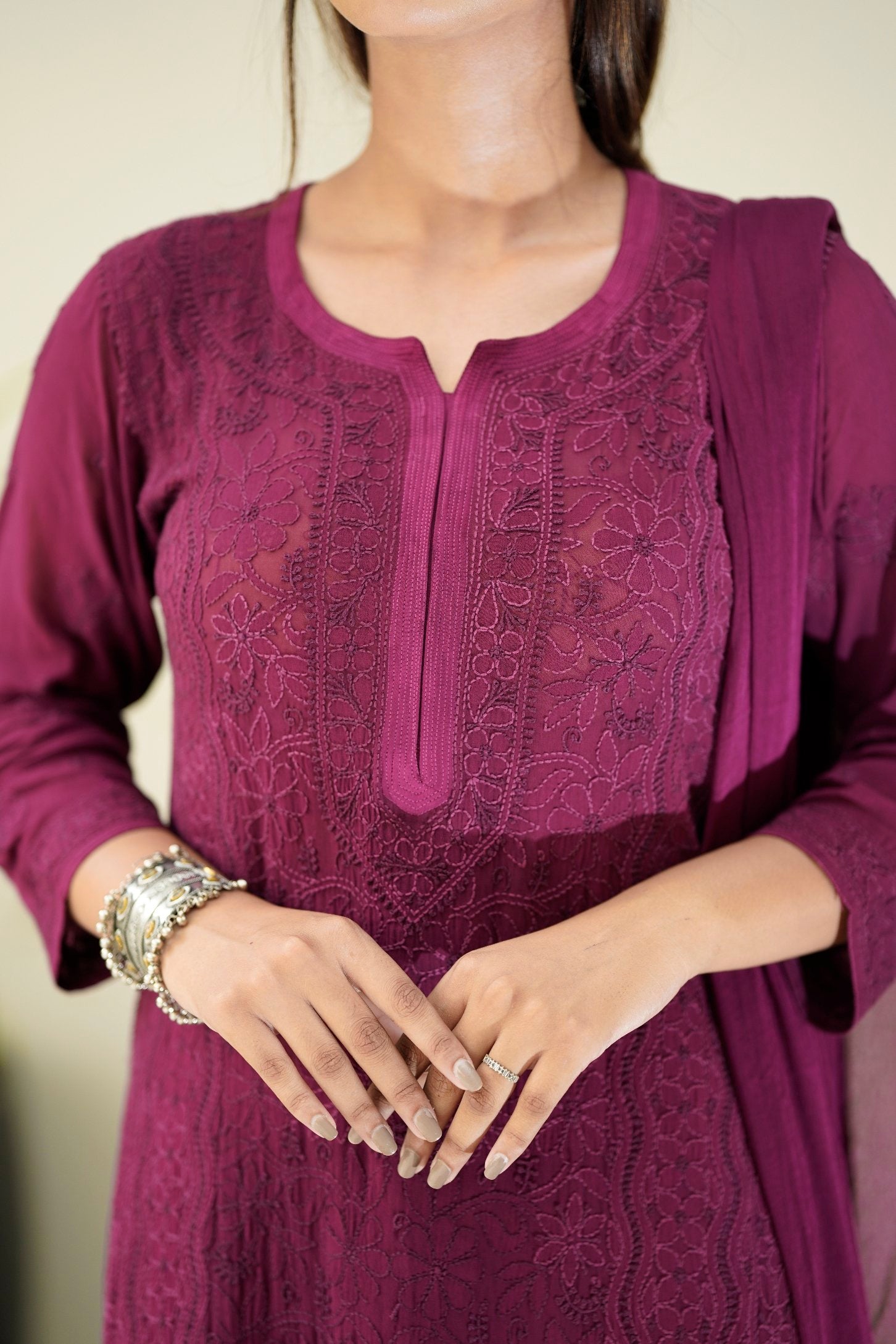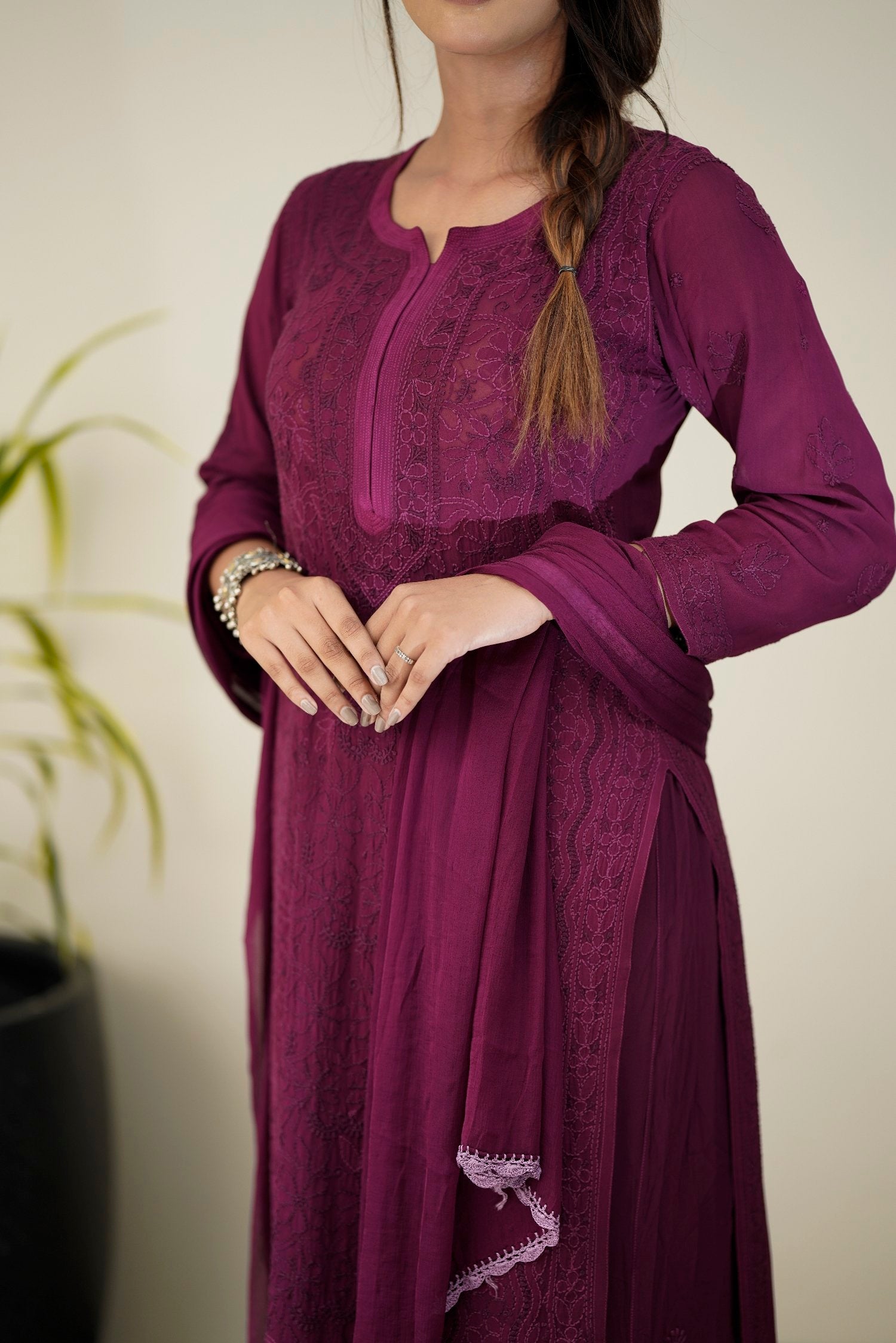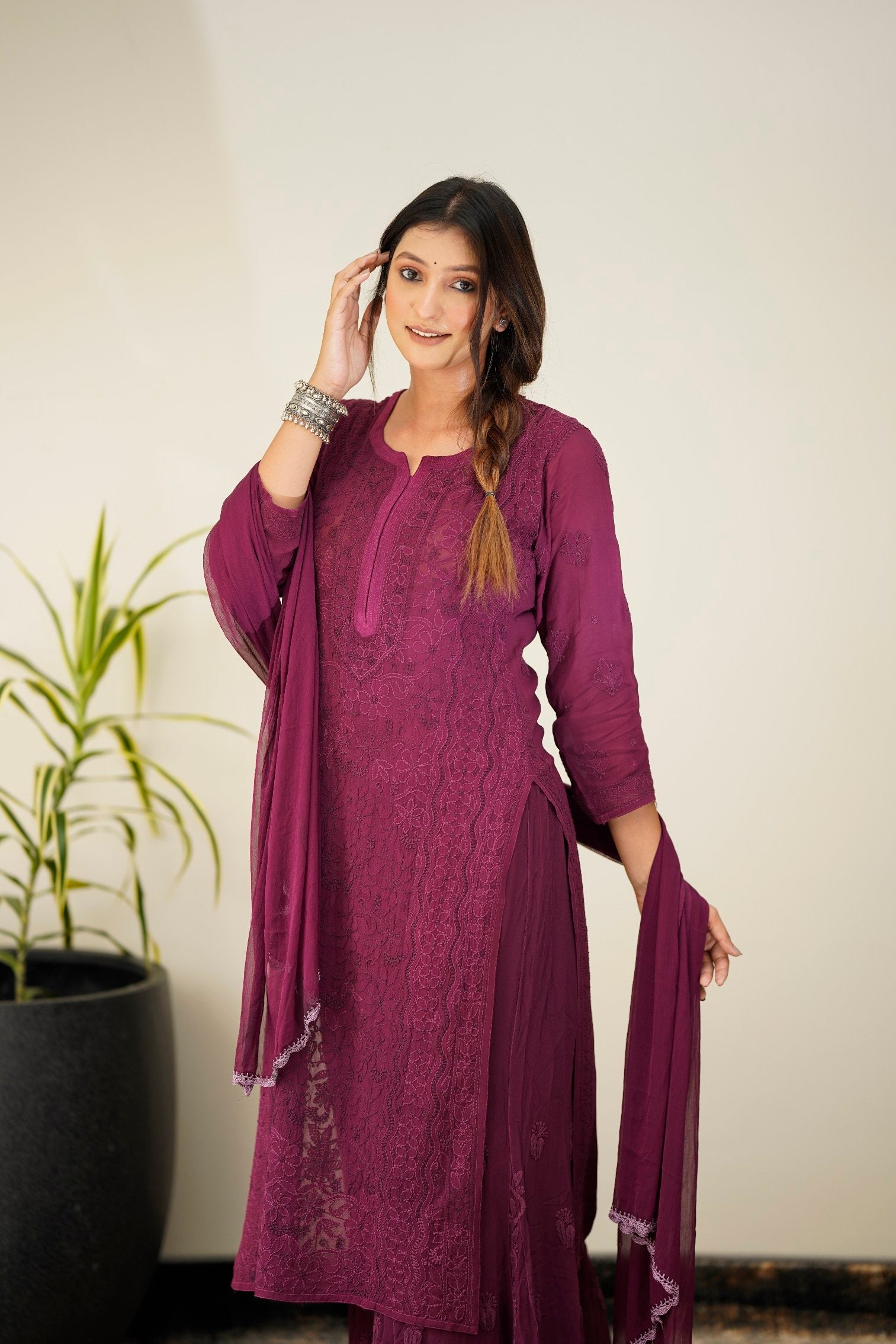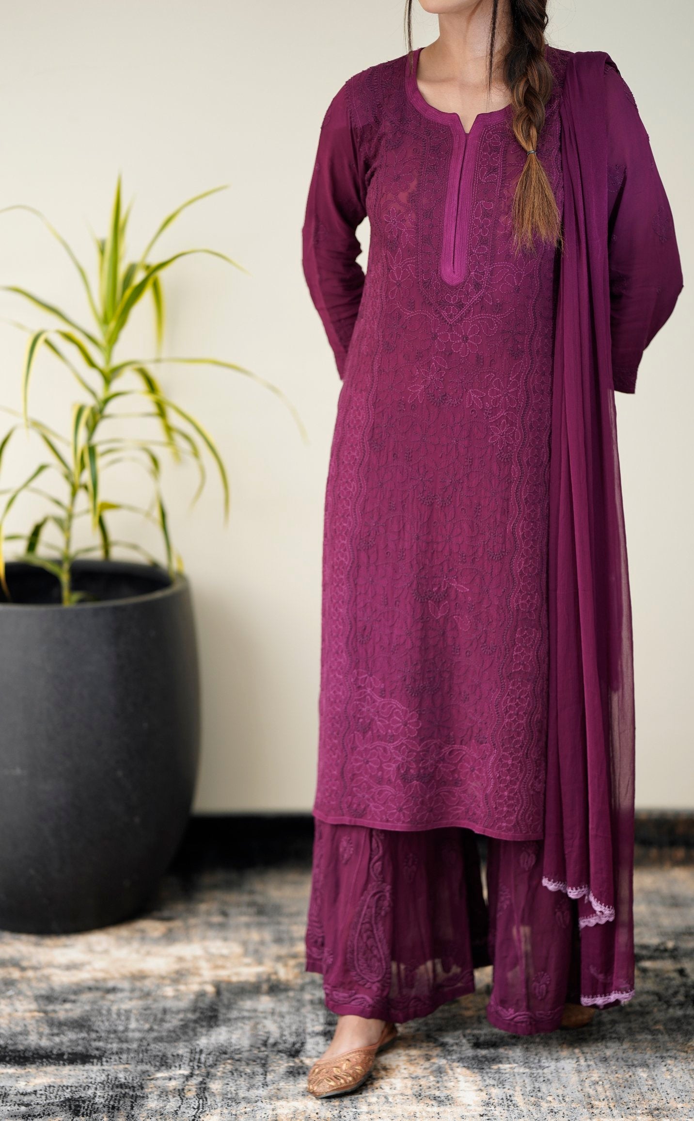Zohra Mauve Premium Georgette Chikankari Sharara Set (Attractive Bottom Design)